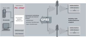 Danach bleibt die GPRS-Verbindung zwischen Prozessleitsystem und Außenstation konstant bestehen. Diese "Quasi-Standleitung" lässt sich beliebig in beiden Richtungen nutzen. Sollte es zu Unterbrechungen kommen, wird dies von der FlowChief GPRS-Fernwirktechnik erkannt und die Verbindung automatisch wiederhergestellt. Auf dieser GPRS-Verbindung werden alle Prozesswerte nach den entsprechenden Anforderungen mit Zeitstempel über Funk und Internet übertragen.