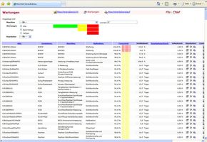 Es können beliebig viele Wartungen für beliebig viele Maschinen definiert werden. Wartungen werden entweder bei einem bestimmten Zählerstand der Maschine oder in festen Zeitintervallen (z. B. alle zwei Jahre TÜV) fällig.
